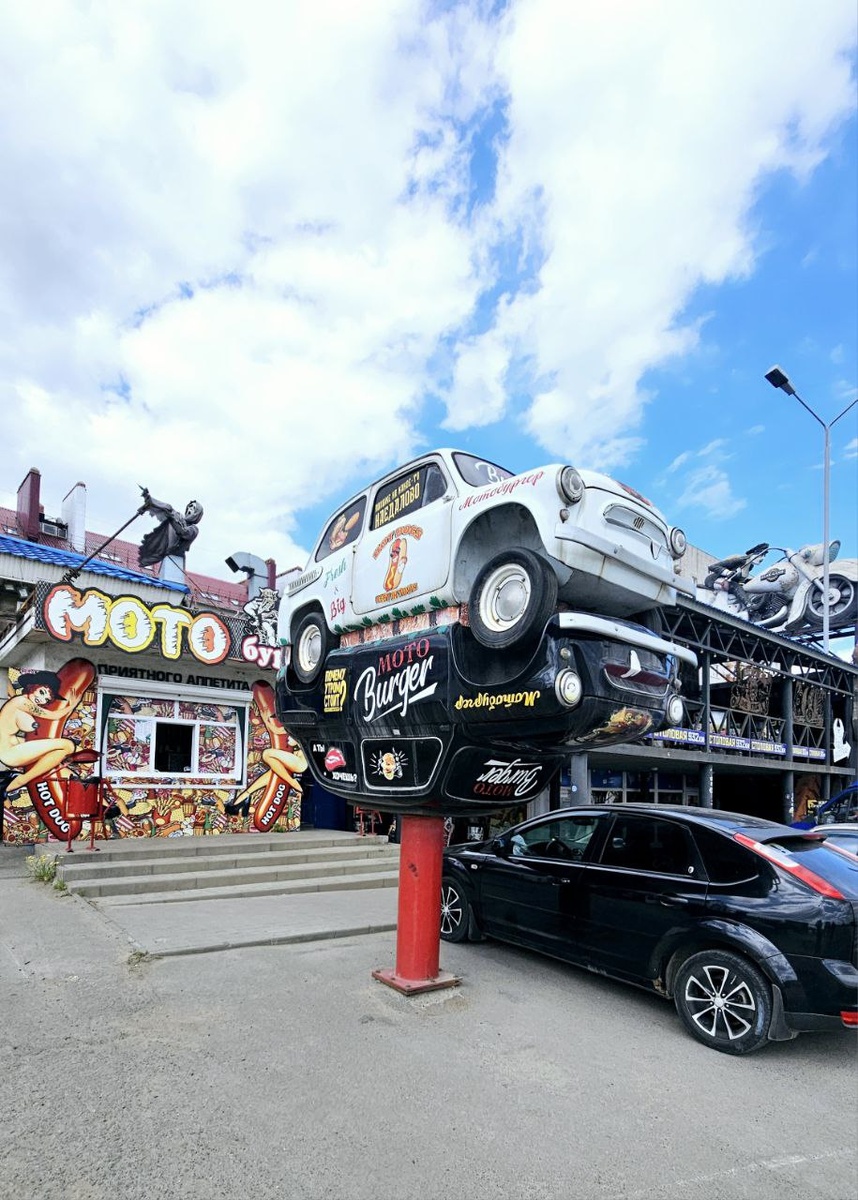 Ностальжнули от души). В Каменск-Шахтинском (Ростовская область) остановились в шикарном месте. Была здесь в 2017м. Здесь и байк-отель, и музей "Легенды СССР", куда мы обязательно зайдем, и парк "Патриот" через дорогу. На каждом квадратном метре - артобъект. Что касается музея "Легенды СССР", великолепный, надо сказать музей. Ностальжнули от души). Много фотографий загрузила в альбом в нашей группе в ВК; Экспозиция посвящена советскому автопрому, технике и воссозданию духа ушедшей эпохи. В музее можно увидеть советские автомобили АМО, «Волга», ГАЗ, «Жигули», ЗИС, «Москвич», «Победа», мотоциклы «Восход», ИЖ, «Минск», «Сова», «Ява» и другие экспонаты. Среди моделей автопрома есть эксклюзив — например, знаменитый таксомоторный седан ГАЗ М-1 выпуска конца 1930-х годов. Для своего времени это был настоящий представительский лимузин, который поставлялся и для высшего руководства страны. Быт на нескольких стендах воссоздан с непередаваемой точностью — серванты с хрусталём, расписной фарфор,