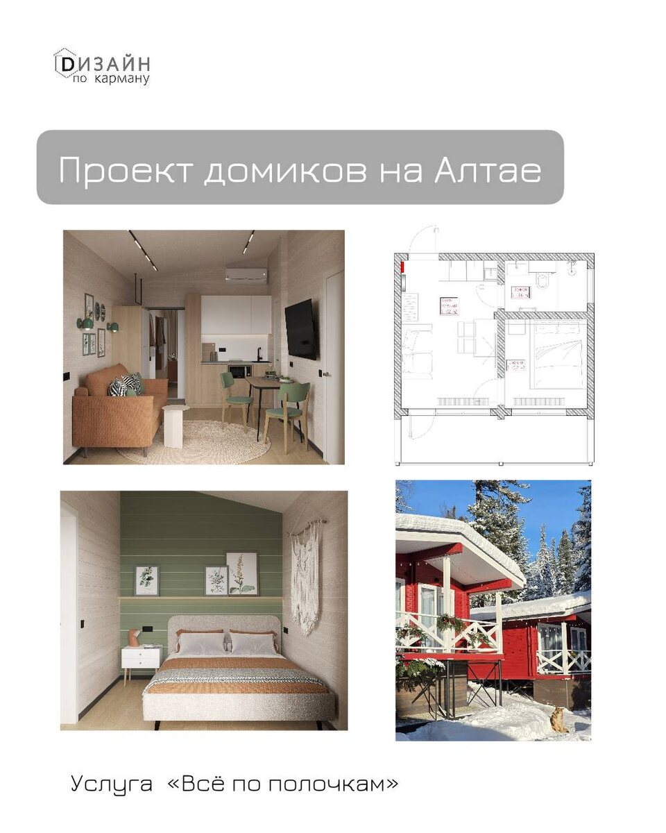 Услуга: «Всё по полочкам» (планировочное решение, строительные чертежи, визуализация, комплектация) Задача К нам обратилась семейная пара. Они влюбились в природу Алтая и решили построить домики для сдачи. Общая картинка и понимание дизайна домиков у пары было. От нас требовалась профессиональная помощь — чертежи и визуализации. Решение Наша студия помогла разобраться с нюансами и деталями. Команда NK Design разработала чертежи, выполнила планировочное решение, визуализацию, подобрала отделочные материалы и мебель. Весь проект был выполнен удаленно 🫶🏻 ➡️Посмотреть больше фото на сайте ⬅️ ______ Задумываетесь о ремонте? Пишите! Проконсультируем, поберем услуги ➡️@Nadin_nkdesign (отвечаем в рабочие дни с 9 до 18) Дизайн по карману | NK Design (НК Дизайн)