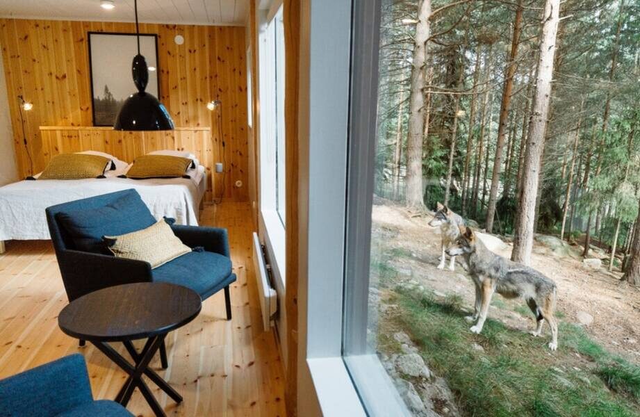 И это не кошмар, а реальность для гостей необычного отеля Varghotell в шведском парке дикой природы