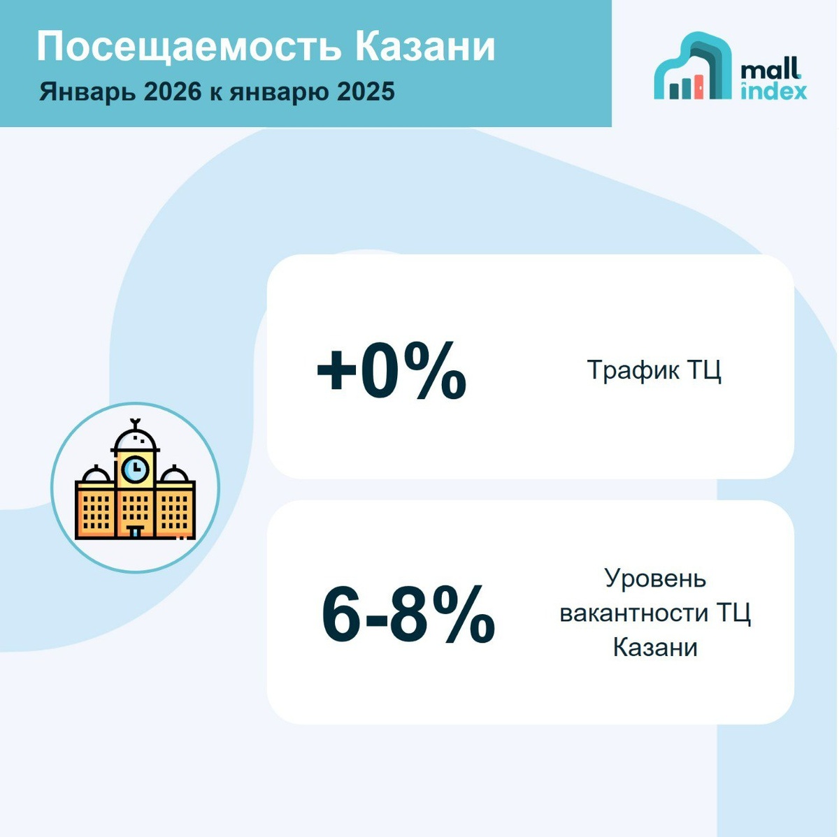 Январь 2026 к январю 2025 +0% - трафик ТЦ остался на уровне аналогичного периода прошлого года 📌 Вакантность большей части классических ТЦ Казани: в среднем фиксируется на уровне 6-8% — близок к нормальным для рынка значениям. «В то же время данный показатель уровня вакансий не исключает внутренних изменений: часть арендаторов может работать в условиях снижения рентабельности, что повышает чувствительность к дальнейшему росту издержек. Наиболее уязвимыми остаются операторы средней ценовой категории с высокой зависимостью от частоты посещений», — Михаил Васильев, Focus Technologies.