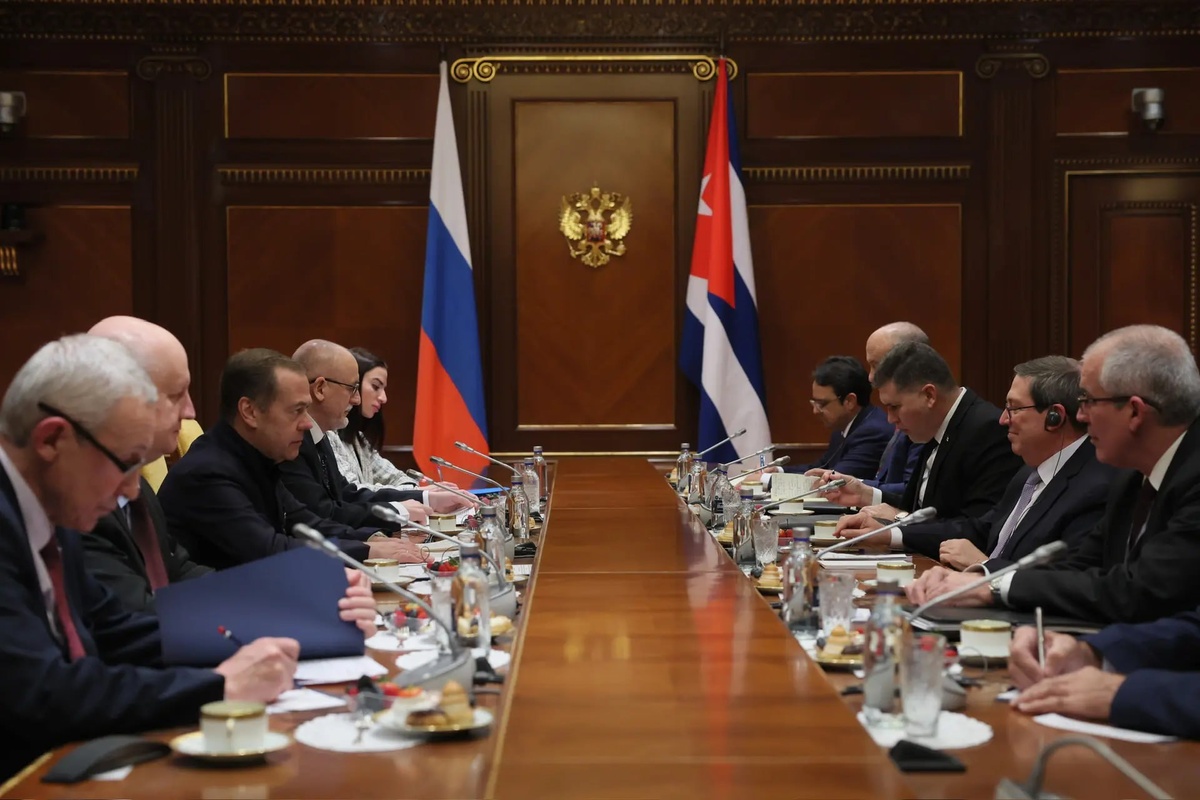 Куба — членом Политбюро ЦК Коммунистической партии Кубы и министром иностранных дел Бруно Родригесом Паррильей. В ходе переговоров Медведев подчеркнул, что Куба остаётся стратегически важным союзником России среди государств Латинской Америки и Карибского бассейна. По его словам, двусторонние связи носят устойчивый характер и опираются на многолетнюю традицию сотрудничества. Отдельное внимание было уделено межпартийному взаимодействию. Медведев сообщил, что Россия намерена и дальше активно укреплять контакты между партией «Единая Россия» и Коммунистической партией Кубы. В прошлом году стороны подписали межпартийное соглашение об особо привилегированном партнёрстве, которое закладывает основу для расширения координации на политическом уровне. Также отмечена работа по развитию связей между молодёжными организациями двух стран. По словам зампреда Совбеза, расширяется сотрудничество между молодёжными активами, что рассматривается как долгосрочный вклад в укрепление стратегического партн