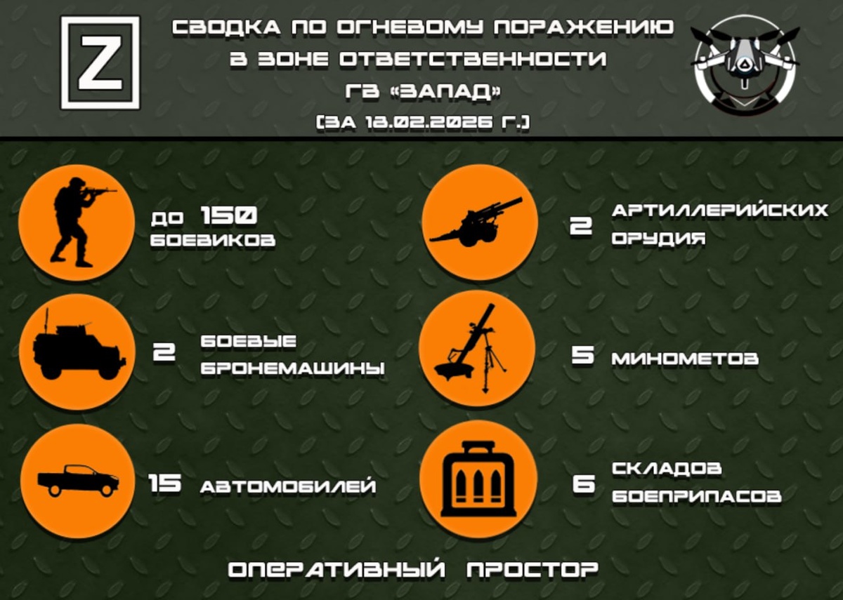 Сводка по огневому поражению в зоне ответственности ГВ «Запад» за 18.02.2026 г
