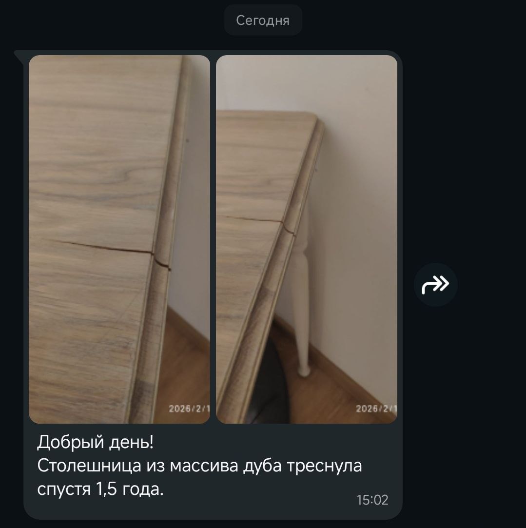 Само по себе столярное дерево стабильно, его влажность на уровне 8%. Но если искусственно создать условия для изменения этого параметра, поставить к батареи или рядом например с увлажнителем, то могут произойти подобные неприятности. Методы лечения, 1. Распил по линии разрыва и переклейка. 2. Клей и сжатие. 3. Заполнение шпаклевкой или воском 4. Поставить декоративную "бабочку" из контрастного дерева. А саму трещину оставить. Мне больше нравится последний вариант.
