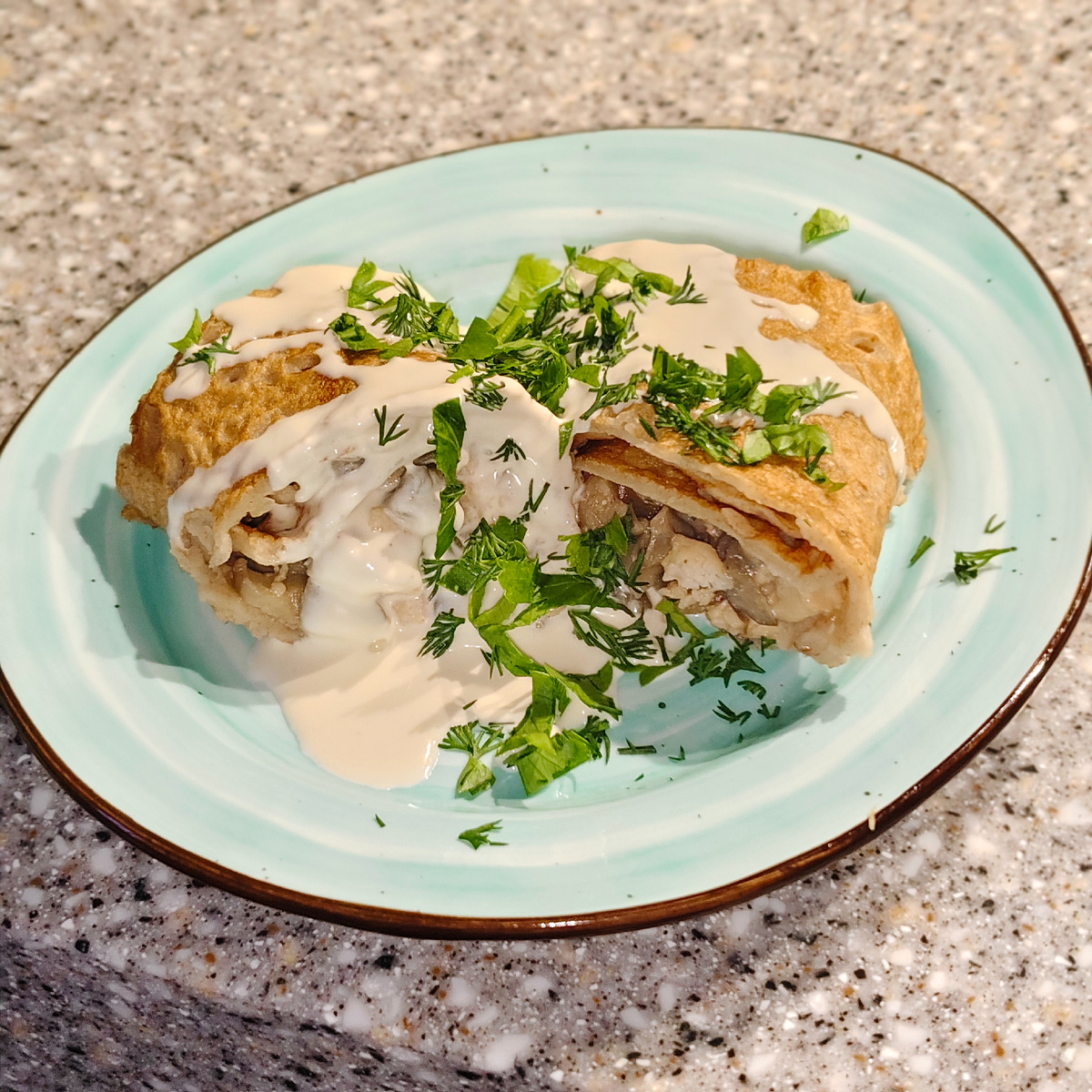 Начинка хороша для блинов , только сметана весь разрез залила )