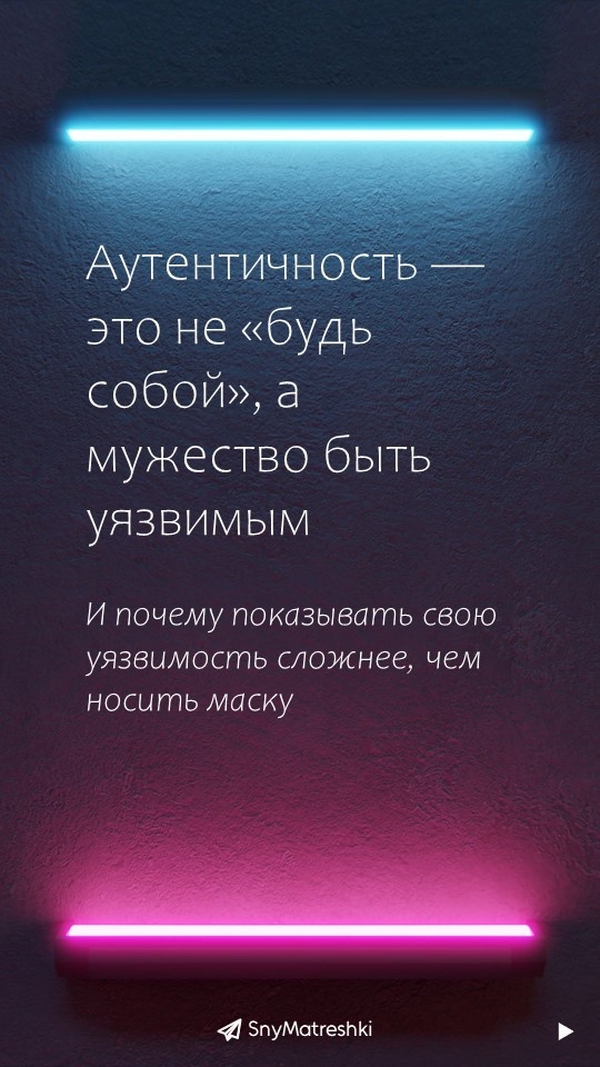 «Будь собой» — звучит красиво, но что это значит на деле? Чаще всего за этим призывом скрывается страх: «А вдруг меня настоящую не примут?». Аутентичность — это не про то, чтобы расслабиться и стать удобной. Это про мужество показывать свою уязвимость, не зная, как на неё отреагируют. В этой карусели — почему быть настоящей так страшно и так необходимо. Поддержать автора Александра Бóгдан,