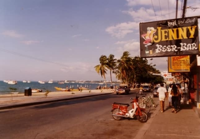 Вспомним Паттайю 80-х – золотую эру, когда Бич-роуд оживала под звуки тропических ритмов. В те годы, задолго до появления мега-отелей и неоновых гигантов, бар "Дженни" был эпицентром ночной жизни, местом притяжения для всех, кто чувствовал пульс пробуждающегося города. Бич-роуд тогда дышала иначе: оживлённее, с соленым бризом, наполняющим воздух, и закатами, казалось, длящимися вечно. Когда небо над Сиамским заливом вспыхивало огнём, "Дженни" зажигал свои неоновые огни, приглашая в мир танцев и общения. Бамбуковые стены, простые деревянные стулья и душевные надписи создавали неповторимый шарм той эпохи. Музыкальный автомат беспрерывно подбрасывал хиты Duran Duran, Wham! и Bee Gees, смешивая их с ароматами кокосового масла, тайского рома и морской соли. Это была поистине уникальная атмосфера, сотканная из смеха, музыки и шума проезжающих байков. "Дженни" стал настоящим плавильным котлом: сюда стекались загорелые туристы, первооткрыватели Таиланда, рабочие и экспаты. За холодным "Сингхой