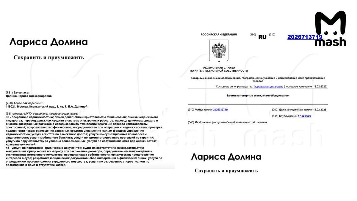 Народная артистка Лариса Долина подала в Роспатент заявку на регистрацию товарного знака в сфере недвижимости