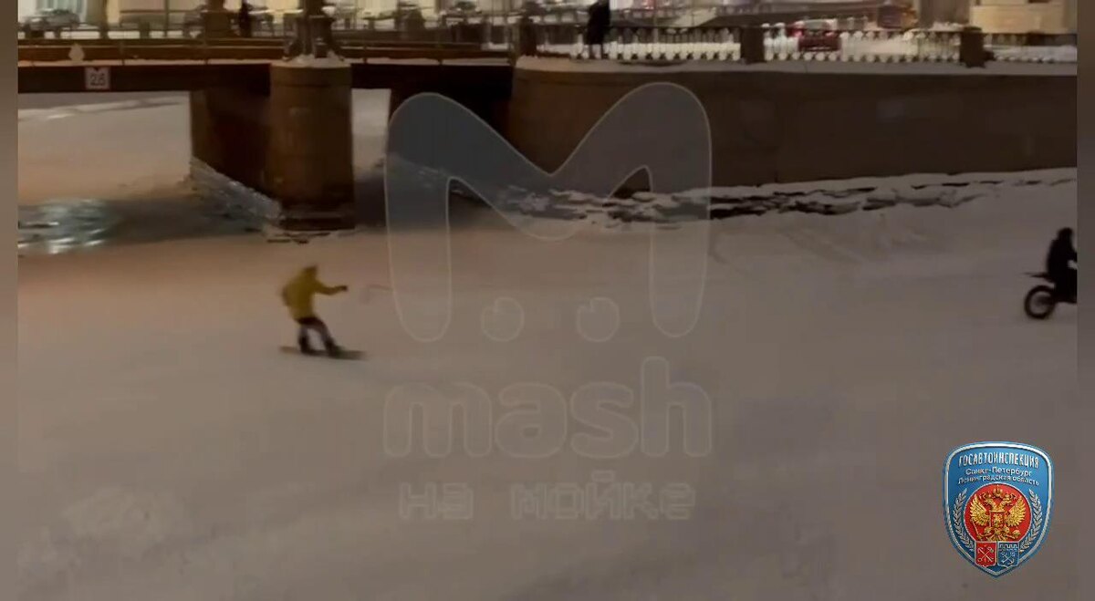 Сотрудники Госавтоинспекции установили личности двоих молодых людей, устроивших экстремальный заезд по льду канала Грибоедова. Видео, на котором один из них рассекает на электровелосипеде, а другой на сноуборде, появилось в городских пабликах в феврале.