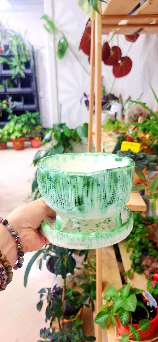 ! "Мой любимый цвет, мой любимый размер", - сразу зазвучал в голове Иа)) А ещё пришли на ум любимые мхи и папоротники. Посмотрите, какая сочная, зелёная, керамическая красотища . А про размер я тоже не просто так) Эти горшочки не очень высокие, но при этом достаточно широкие, с дренажными отверстиями. Такие полюбят и суккуленты, и мои любимые папоротники. Да много кто! Сансы, петунии, пеперомии, фиалки, луковичные...Всех не перечислить. Но между нами, они и без растений прекрасно вписались в интерьер🤗