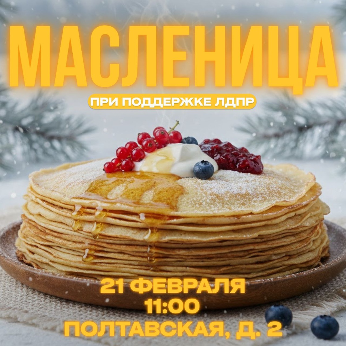 🥞 21 февраля во дворе дома № 2 по улице Полтавской состоится весёлая масленица. В программе праздника: музыкальные конкурсы, эстафеты, подвижные игры, скоморохи и сказочные герои, угощение блинами. Гостем мероприятия станет депутат городской Думы Нижнего Новгорода фракции ЛДПР Иван Корниенко. ◻21 февраля; ◻11:00; ◻улица Полтавская, дом 2.