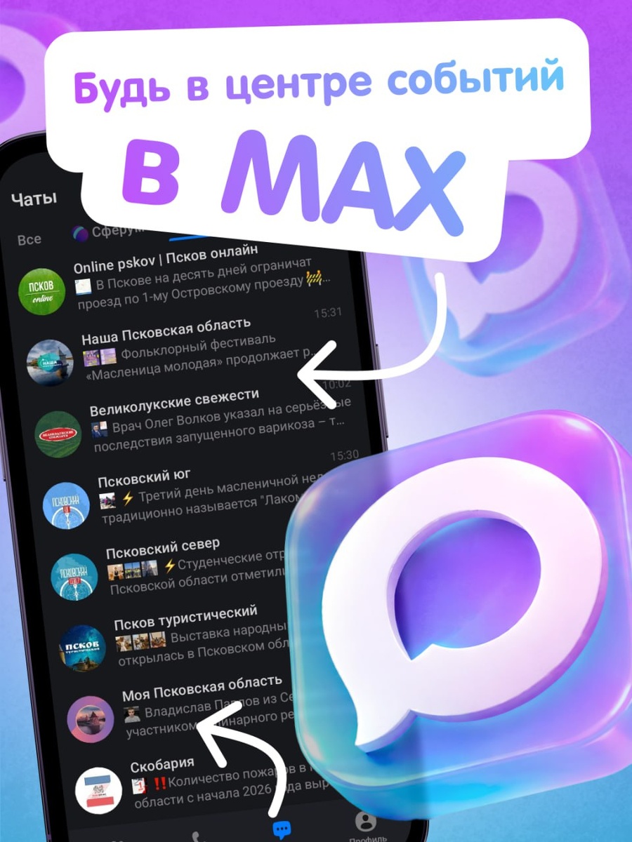 ? 😑 Где пройдут ближайшие события? 👀 Какие мероприятия стоит посетить? 🧐 ✅ В MAX вы найдете каналы с актуальными новостями, афишей, анонсами и полезной информацией для жителей и гостей региона. 👇 Мы подготовили для вас список таких платформ: Скобария Моя Псковская область Псков Туристический Псковский север Псковский юг Великолукские свежести Псков онлайн ⚡️ Канал Наша Псковская область теперь тоже можно найти в MAX — подписывайтесь и будьте в курсе самых важных событий региона. Оставайтесь с нами #НашаПсковскаяобласть