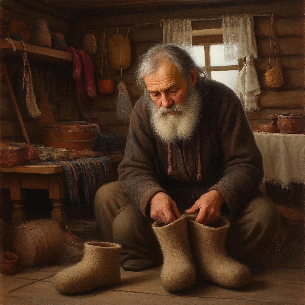 Дядя Ваня был прекрасным сапожником. Он всю деревню обувал. А ещё своими руками делал валенки, которым не было сносу. Валянию его научил отец, а отца его отец и так далее. Дяде Ване передали семейные секреты по изготовлению валенок. Сделанные заботливыми руками старика валенки у каждого жителя стояли в доме и надевались в самые лютые морозы. Их берегли как настоящее сокровище. После улицы с валенок стряхивали снег веником и ставили их сушиться неподалёку от печки, чтобы войлок не затвердел.