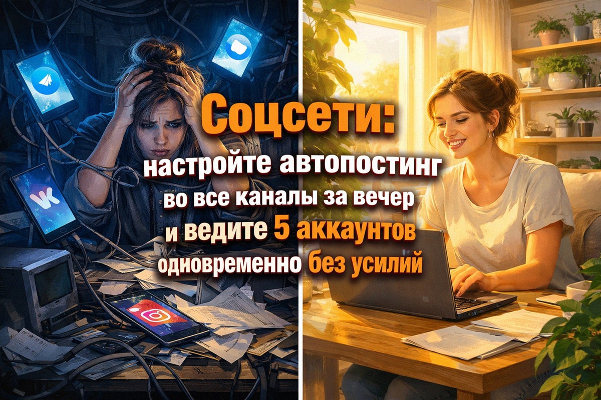 Хотите автоматически вести 5 соцсетей за один вечер? Узнайте, как настроить автопостинг в Telegram, VK и Instagram!