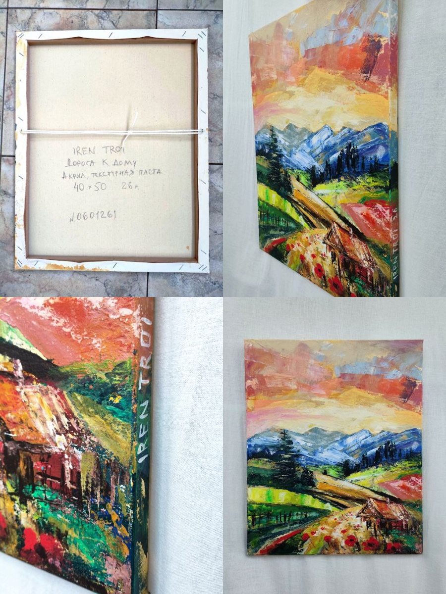 40×50 см Акрил, текстурная паста Закатное небо, прохладные горы и маленький дом среди маков. Работа про спокойствие и возвращение к себе. Если откликается — напишите. Цена: 18 000 ₽