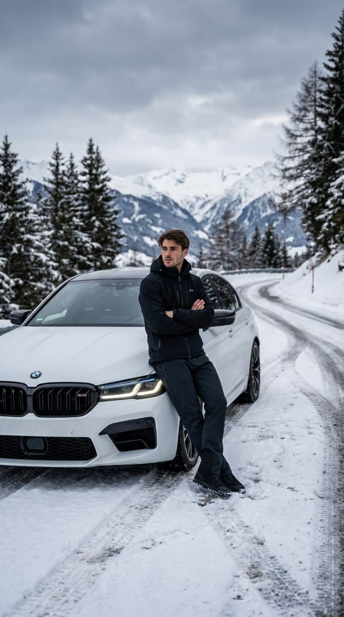 Чёрный характер 🏔 Переходи в: https://t.me/marketplacevideoai_bot и пробуй! Нажимай "Меню", "Главное меню", выбирай "Работа с фото", "Pro режим", далее "Редактировать фото", загружай своё изображение и копируй промпт. А ещё проще ты можешь сделать это прямо на сайте 👉 https://marketvideo.ru/ (звезды на сайте и в боте разные) 🔹 Просто выбери готовый шаблон 🔹 Загрузи своё изображение 🔹 Нажми одну кнопку — и магия готова ✨ На сайте собрано ещё больше шаблонов, удобно распределённых по категориям: зима, праздники, мультфильмы, фильмы, дети, животные и многое другое. Промпт: Используй загруженную фотографию модели как основу. Сохрани лицо, черты, мимику, натуральный цвет и текстуру волос — без подмены внешности и идентичности. Создай кинематографичный lifestyle-портрет: мужчина, одетый в чёрную технологичную лыжную куртку и тёмные Slim-fit софтшелл-брюки, стоит рядом с BMW M5 Competition в цвете Frozen Brilliant White на извилистой заснеженной горной дороге с драматичными альпи