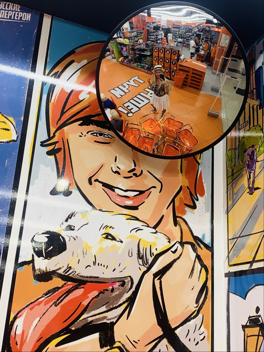 Гулять по магазинам в Сочи - наверное, последнее, что хочется делать в этом ярком, курортном, отпускном городе. Ведь приезжаем за морюшком, солнышком, природными красотами Нооо! В этом магазин я не могла не зайти, хоть и нужды в этом не было. Ведь на вывеске и рядом с торговым центром всех встречал тот самый «Рыжий» Иванушка из музыкальной группы "Иванушки International". Не сказать, что я прям музыкой этой увлекалась на пике их популярности, но песни «Иванушек» тогда гремели из каждого утюга, да и имидж у Рыжего вполне себе удачный. Так что идём! Магазин «Рыжий» находится в Сочи в ТЦ «Мелодия». Находим магазинчик - в самом ТЦ его ещё надо поискать, но мимо нужного павильона не пройдешь - сразу в глаза бросаются яркие оранжевые баннеры. На стенах – комиксы и рисунки, из динамиков - песни 90-х. Ну и, конечно, фото Андрея Григорьева-Апполонова везде-везде). Не знаю, сам ли он открыл этот бренд, или просто представляет магазин как медиа-персона, но изображения «Рыжего» буквально повсюду,