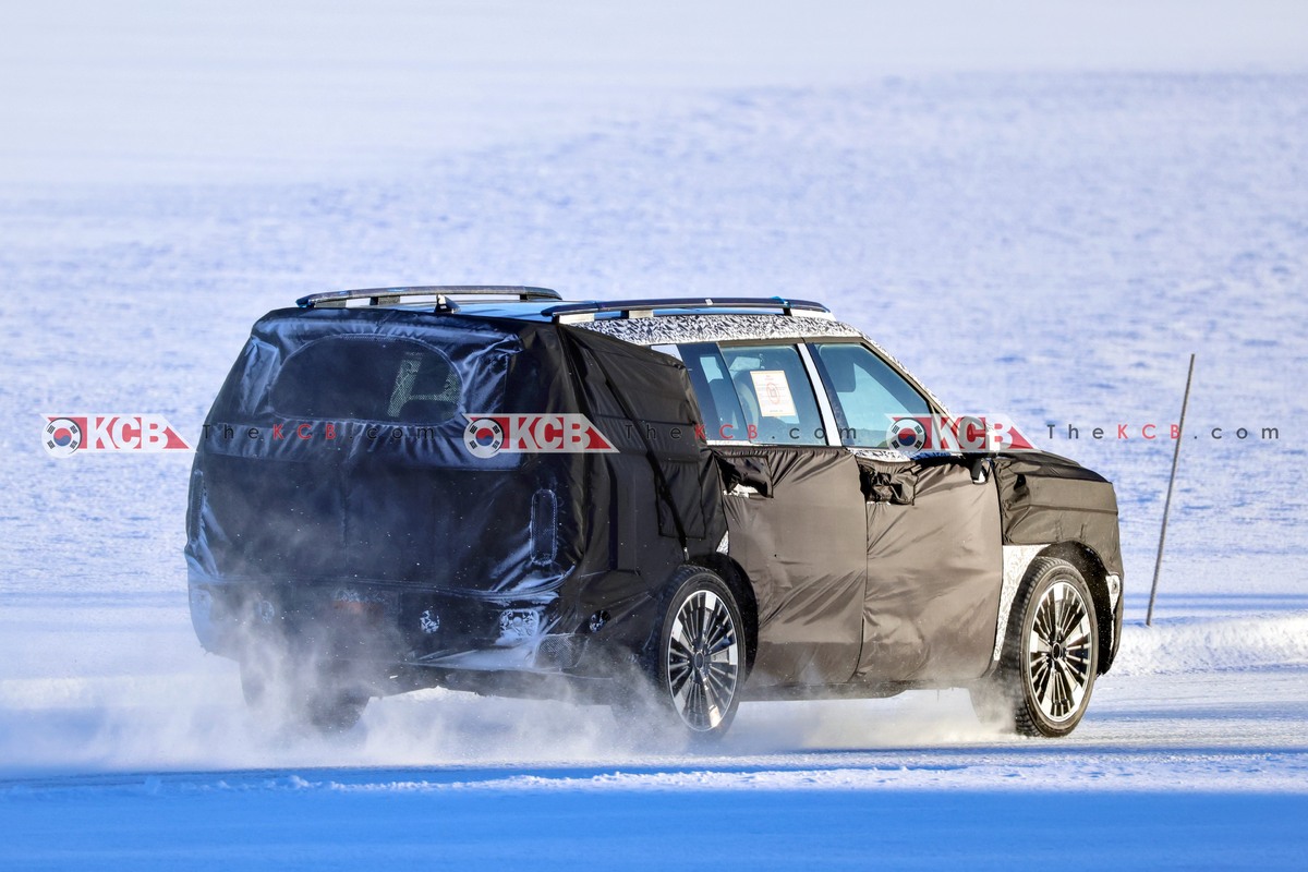 Hyundai Santa Fe EREV для 2027 года засняли за Полярным кругом: в салоне заметили экран Pleos Connect и руль в стиле Tesla