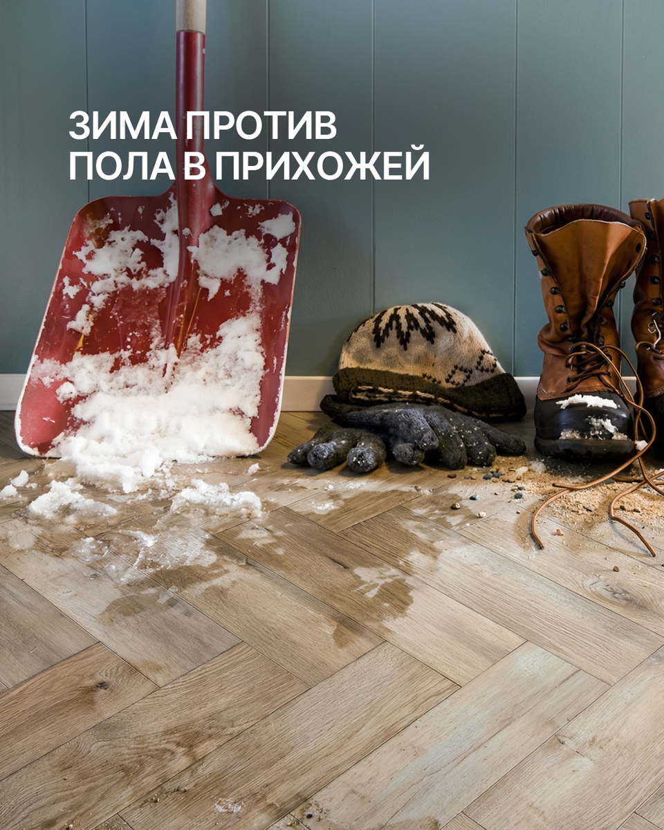 Именно прихожая зимой принимает на себя основной удар. Снег на обуви, дорожная соль, песок и влага попадают на пол каждый день — и со временем могут заметно сократить срок службы покрытия. Первая опасность — абразив. Песок и мелкие частицы работают как наждачка. При постоянной нагрузке они постепенно стирают защитный слой, особенно в зоне входа, где мы чаще всего ходим. Вторая проблема — влага. Талая вода проникает в стыки, а при слабой защите замков может вызывать разбухание, расхождения и деформации досок. Эти процессы часто начинаются незаметно, но со временем становятся очевидными. Третья угроза — соль и реагенты. Они агрессивны к поверхности и при регулярном контакте могут оставлять следы и повреждать декоративный слой. Именно поэтому для прихожей важно выбирать покрытие, рассчитанное на реальные зимние условия. Надёжный ламинат сохраняет внешний вид и стабильность даже при ежедневных нагрузках. FLOORWAY — ламинированный паркет, который рассчитан на реальные условия эксплуатации,