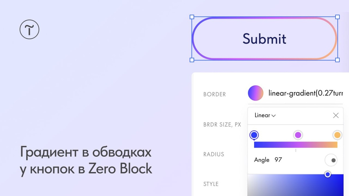 Обводку у кнопок в Zero Block теперь можно сделать градиентной. Цвета можно настроить самому или выбрать готовый градиент из библиотеки Tilda Colors. Где настроить: Element Settings (Настройки элемента) 👉 Border (Обводка) 👉 Linear/Radial (Линейный градиент/Радиальный градиент) #tildaupdates
