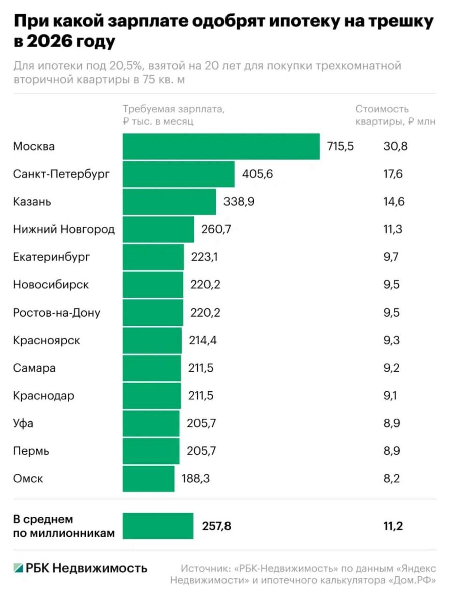 #недвижимость Аналитики РБК посчитали, сколько нужно зарабатывать, чтобы купить трехкомнатную квартиру в Нижнем. Цифра пугает: 260,7 тысяч рублей в месяц. При таком доходе банк милостиво разрешит вам отдавать за ипотеку 157 тысяч ежемесячно. Остальное — на еду и коммуналку. Реально ли платить такие суммы? 😭 — Нереально, это космос! 🔥 — Если семья большая и все работают — возможно. 🦌 Подписаться | Реклама | 📲 Наш канал в MAX