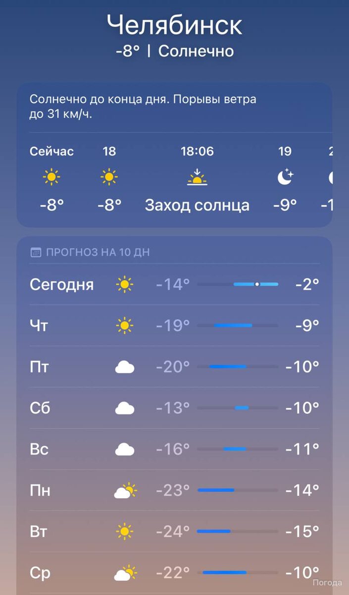 🥶 Мороз до −29 ударит этой ночью в Челябинской области