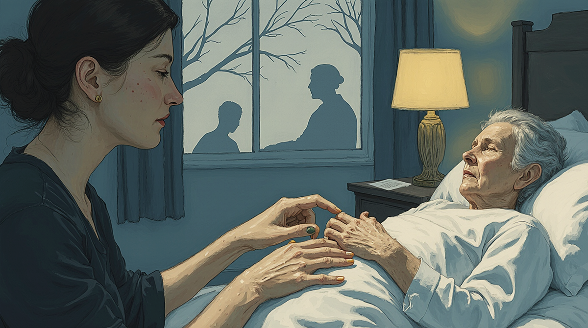 Она не открыла глаз. Только ресницы дрогнули — один раз, второй. И мне показалось — или правда? — что по щеке сползла слеза. Одна. Маленькая, быстрая. Упала на подушку и растворилась в наволочке, оставив только тёмное пятнышко.