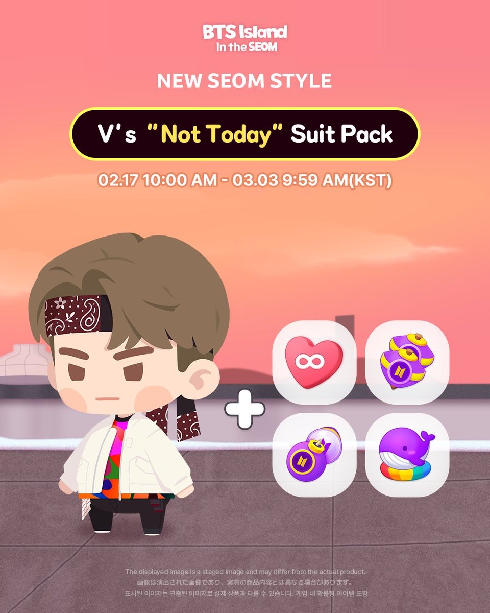 : 🐻 Новый стиль Seom. Фанаты Тигрёныша, закройте глаза на секунду 🫣 🍯 Фанаты Мишки Тэхёна, это для вас! 💘 Костюм Ви "Not Today" выпущен! 🏝 Подробнее #InTheSeom @kumihobts