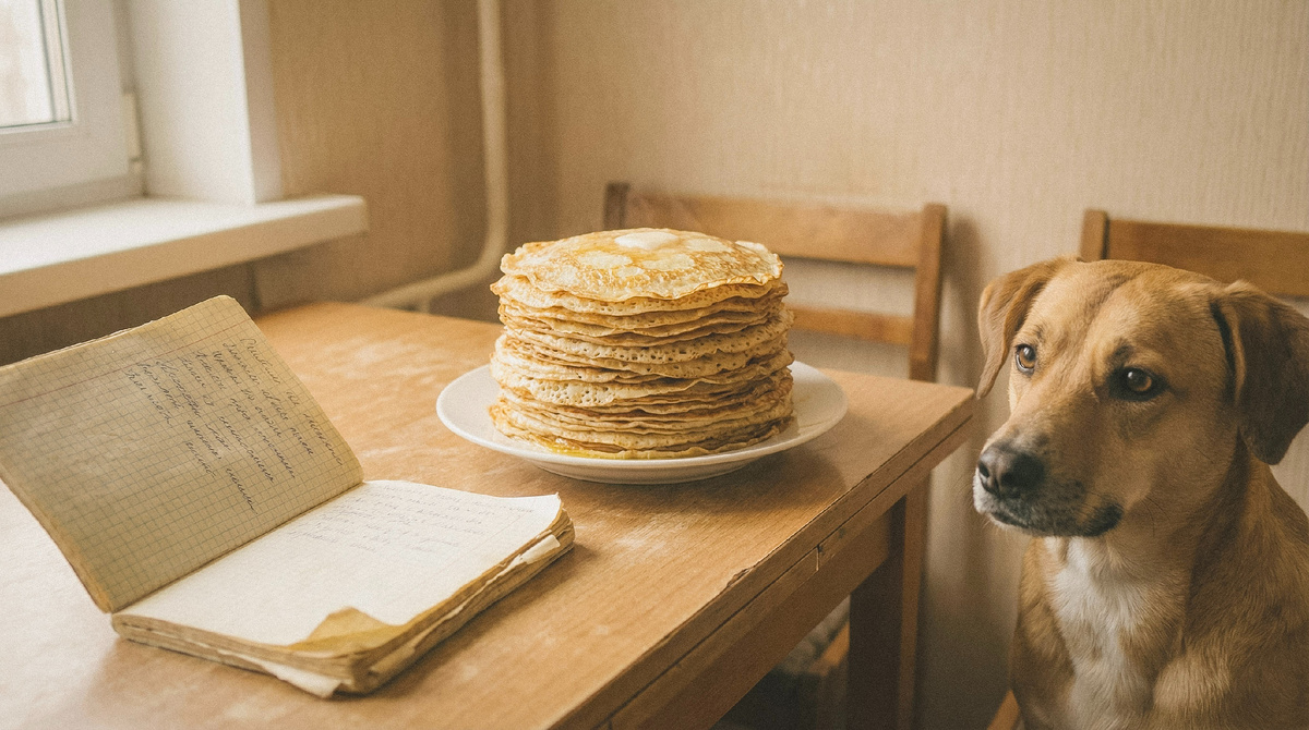Год назад Коля ещё был. Ставил опару с вечера, а утром ходил по кухне в своём клетчатом фартуке, подмигивал жене и говорил, что тесто - дело мужское. Зинаида только фыркала, но не спорила. Коля замешивал, она пекла. Лайка крутилась под ногами и ждала свой первый блин - Коля всегда отдавал ей первый, тот самый, который комом.