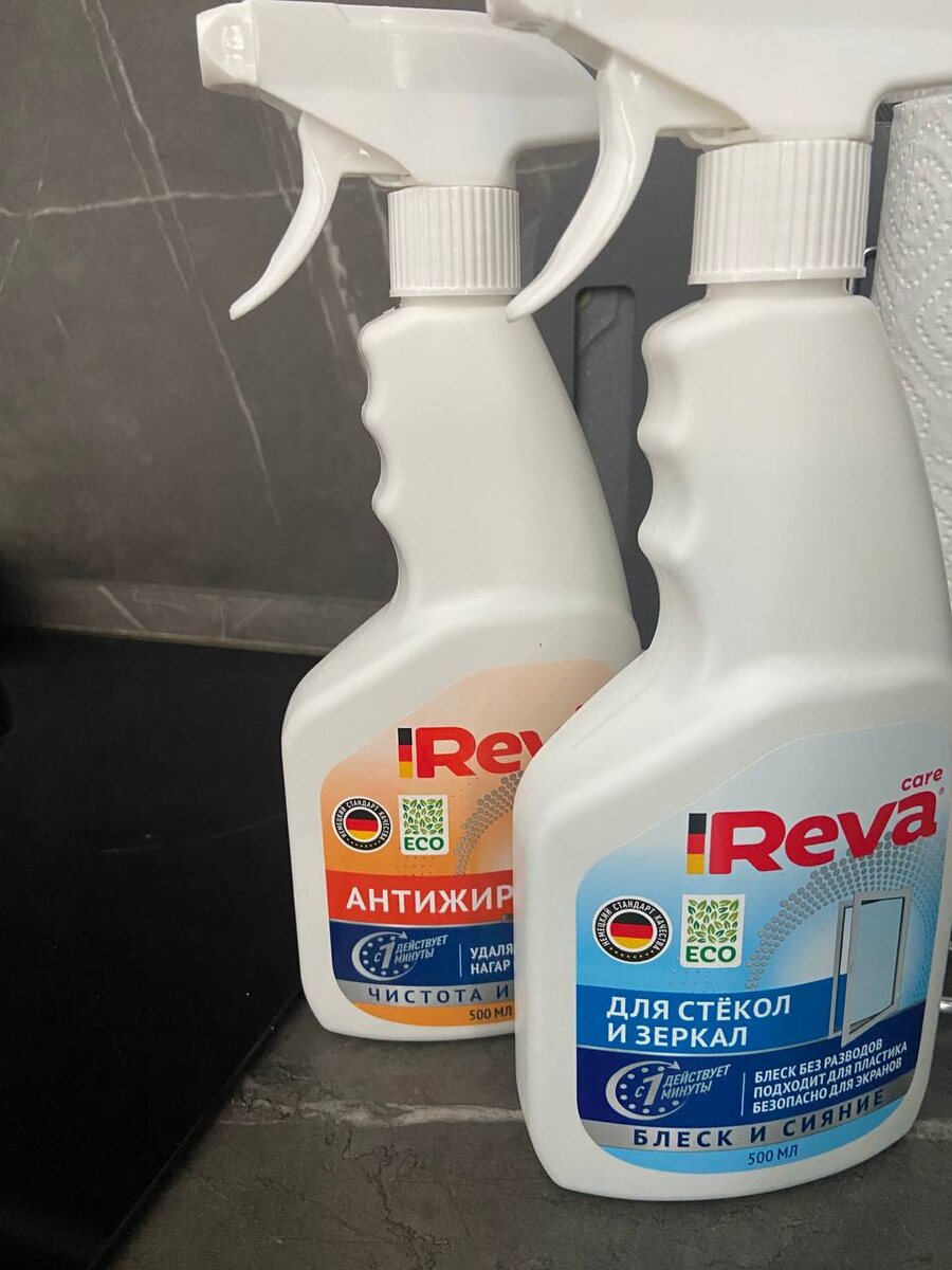 Делюсь сразу двумя находками-бомбами одной линейки в виде спрея, которые нашла на ВБ. 🪞 С маленькими пальчиками, которые магически появляются каждый день (особенно, едва я вымою зеркала), теперь помогает бороться средство Reva Care для зеркал и стёкол — моё свежее открытие. Хорошо распыляет, не растекается по всему зеркалу, отлично смывает следы и потёки с зеркала, не оставляет разводов. Потеплеет, и на окнах опробую. 😄 Взяла со скидкой, артикул 32749124. 🥞Ну а второй новый помощник проявил себя на этой неделе, когда блины жарятся (и поедаются) со скоростью света.😁 Reva Care "Антижир" быстро удаляет любые загрязнения, даже старый жир и следы готовки. Универсальный, подходит практически под любую поверхность (нашу электрическую им можно мыть). Заодно отмыла духовку и микроволновку, хорошо, что кухня маленькая, а то отмывала бы до сих пор.😁 😄Сейчас на ВБ на него приятная цена, артикул: 32753167. #обзор_покупки