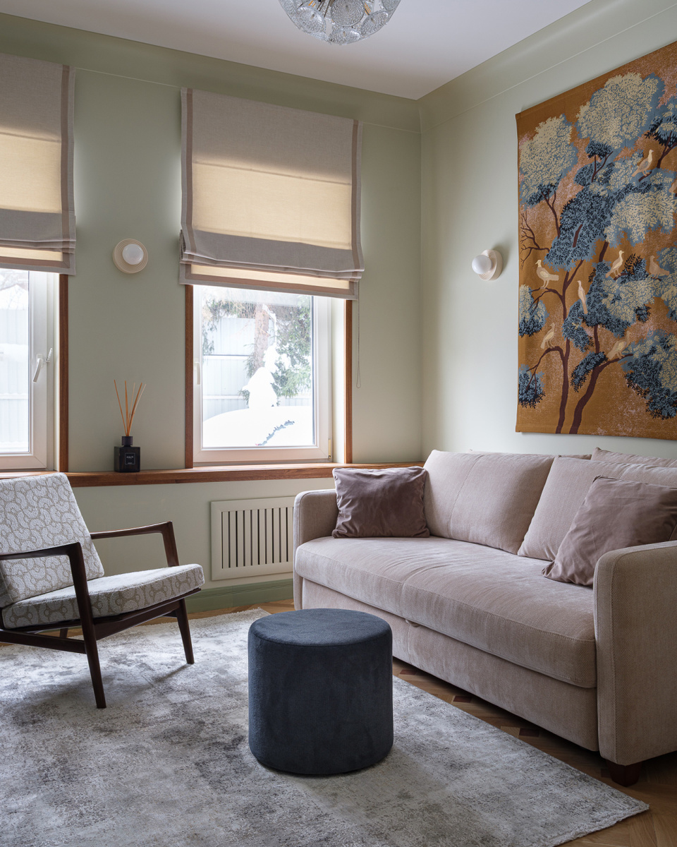 Стены этого дома хранят воспоминания о детстве главы семьи. Здесь жили его родители. Поэтому заказчики с особым трепетом возражают обветшавший дом. «Передо мной стояла задача обновить помещения первого этажа дома и лестницу. Мы возвели новые стены и потолок, поменяли всю сантехнику и организовали санузел с постирочной. Появилось много места для хранения вещей и в коридорах. Гостиная, место встречи с друзьями и отдыха, вдохнула новую жизнь. Это уютное и теплое место», — делится Ирина, автор проекта. В интерьере преобладают природные оттенки, мягко перетекающие по всему пространству, живые фактуры и вещи с историей. Автор проекта и стилист: Ирина Марковская Фотограф: Евгений Гнесин Двери: Emma 1, Эмаль, цвет Бланж