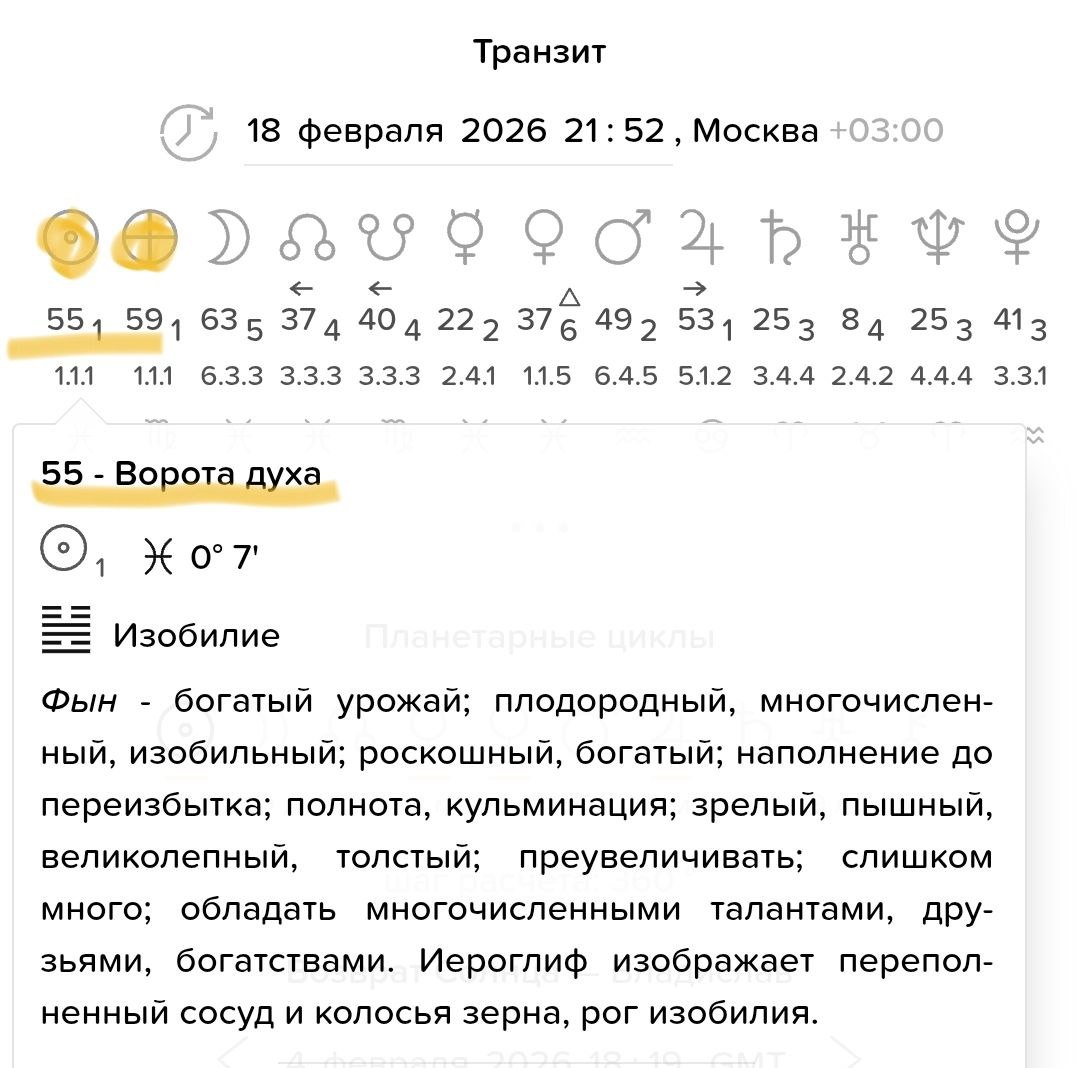 чувств и сфокусированной энергии. На этой неделе я очень много думала о том, как мельчайшие жизненные события формируют судьбу. О том, что все мы, отчасти, являемся заложниками нашей судьбы- того, что предустановлено (поковырялась в этимологии слова "destiny"). В русском языке слово "судьба" уходит корнями к слову "суд", но если смотреть глубже, то имеет общее со словом "связь, говорение". Итак, есть ощущение, что в состоянии бессознанки, в которой мы чаще всего пребываем, судьба действительно как рок настигает нас. Одно событие связывает нас со следующим. Одно желание приводит в те или иные ситуации, сценарии, роли, где прошлое повторяется, а неизбежное случается. Но есть ли хоть какое-то сознательное участие человека в этом? О да, к концу недели у меня появилась вера в это. Но произойдёт ли с человеком пробуждение к состоянию осознанности- тоже аспект судьбы, однако. Сегодня вечером нас встретит новая 6-тидневная неделя оси 55/59, где Солнце будет светить в 55 воротах Духа, Изоби