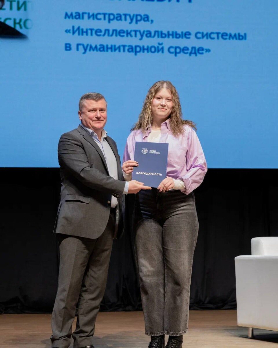 💫 😎 Наши студенты успевают всё: учиться, творить и побеждать в науке! 🏫 На расширенном заседании Учёного совета студентке 3 курса ИРЯ РУДН Анне Солдатенко объявлена благодарность ректора за высокие результаты в научно-исследовательской работе. Её проект «Автоматизированная система извлечения именованных сущностей и эмоциональной окраски текстового контента» получил поддержку в программе Фонда содействия инновациям «Студенческий стартап». Благодарность также получил наставник проекта – магистрант 2 курса ИРЯ РУДН Владимир Калинин – за вклад в подготовку студентов к научным конкурсам. Гордимся и поздравляем! #КРЯ1 #наши_студенты