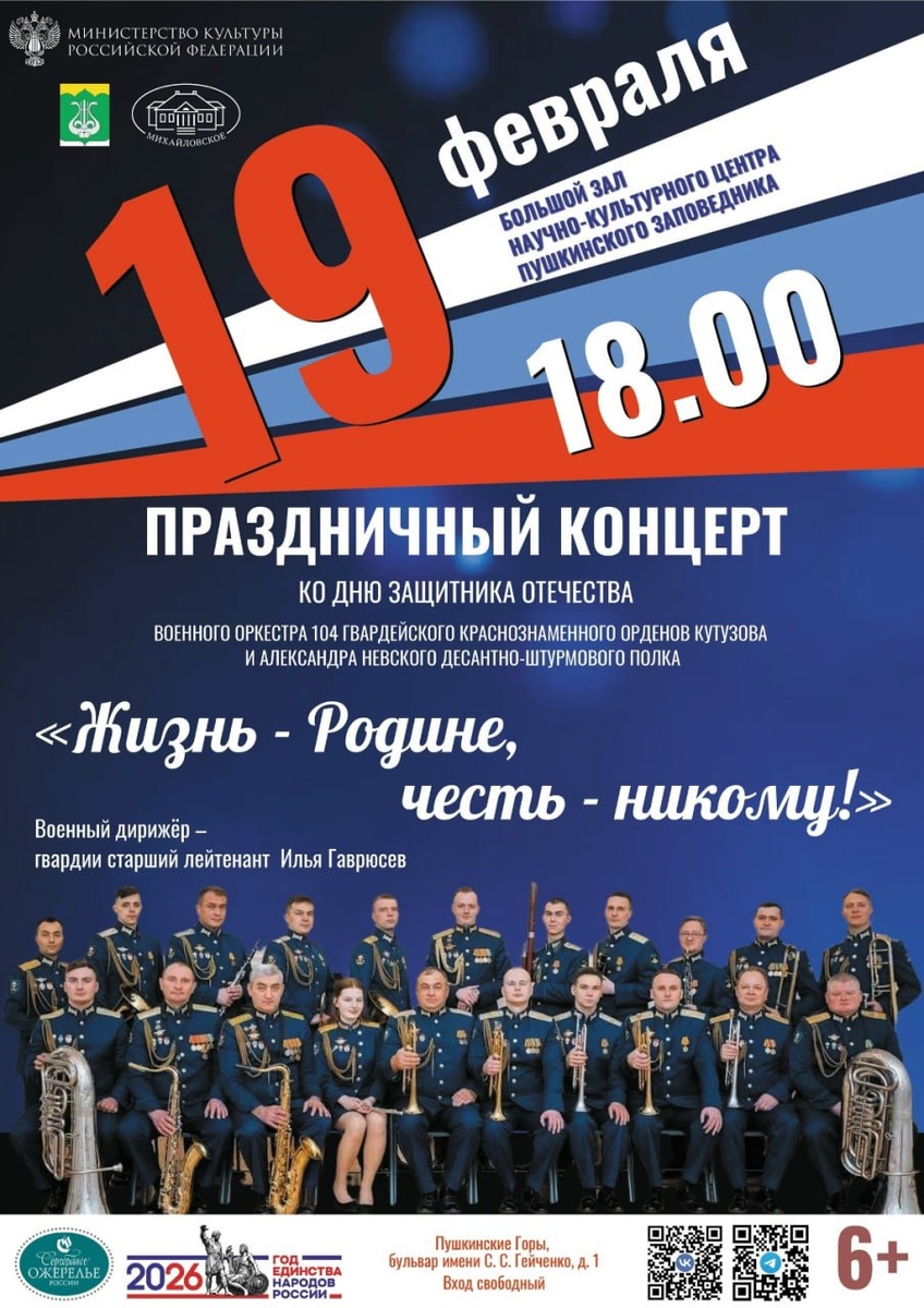 Праздничный концерт "Жизнь Родине – честь никому!" пройдет в музее-заповеднике "Михайловское" 19 февраля