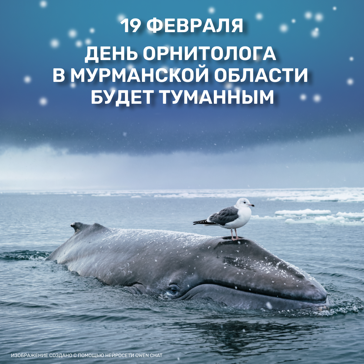 🥶 В Кольском Заполярье 19 февраля, в День орнитолога и День китов и морских млекопитающих, температура воздуха днем составит от -10 до -15