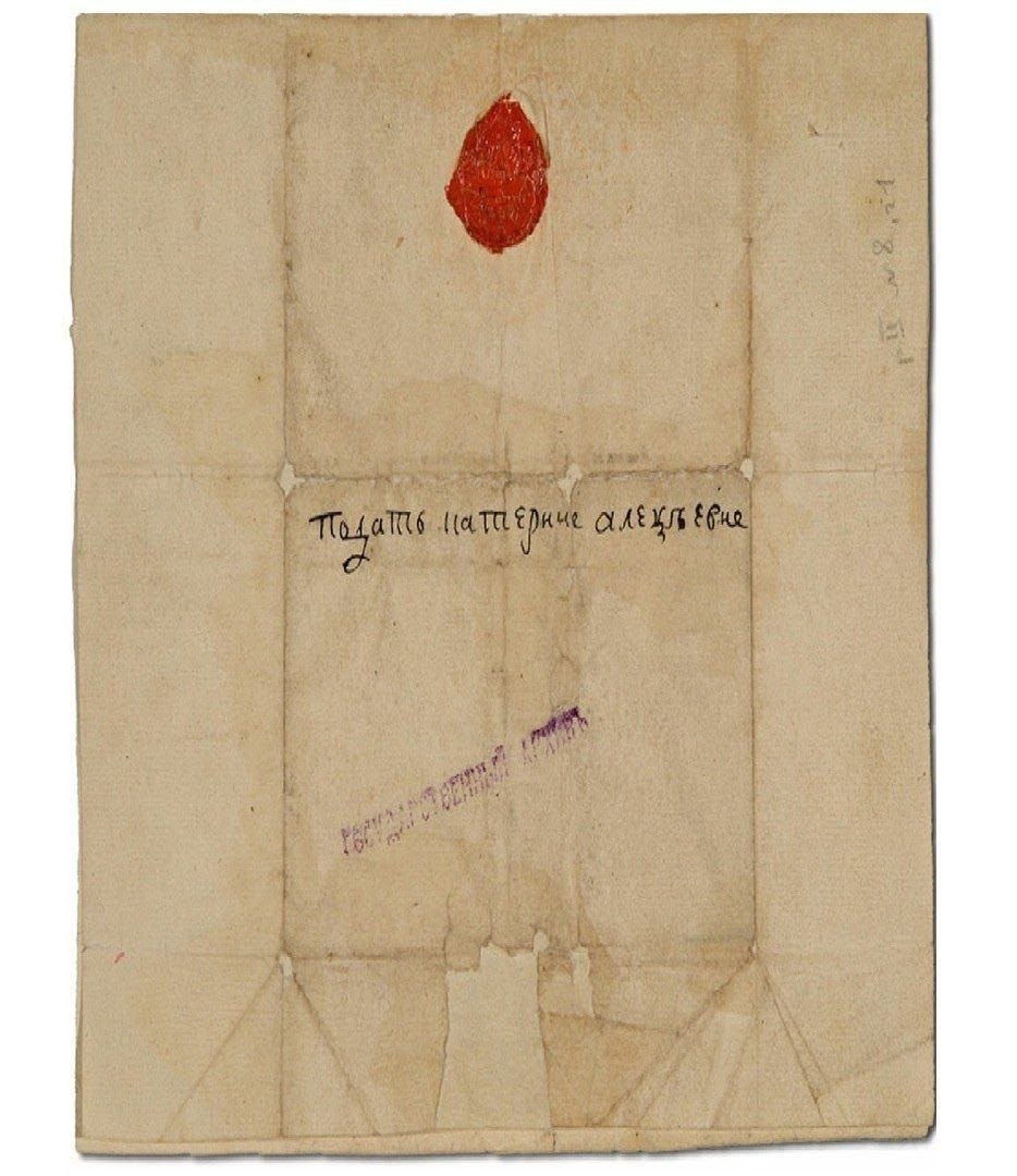 Почерк крайне неразборчив из-за привычки царя писать очень быстро, этакий вариант скорописи: «Матка, здравствуй. Объявляю вам, что всемилостивый Господь неописанную победу над неприятелем нам сего дня даровати изволил, и единым словом сказать, что вся неприятельская сила наголову побиты, о чем сами от нас услышите. И для поздравления приезжайте сами сюда. Piter. Поклонись от меня кнеине и протчим. Из лагору, в 27 д. июня 1709». Оригинал письма хранится в Российском государственном архиве древних актов. Терра инкогнита | Неизвестная земля