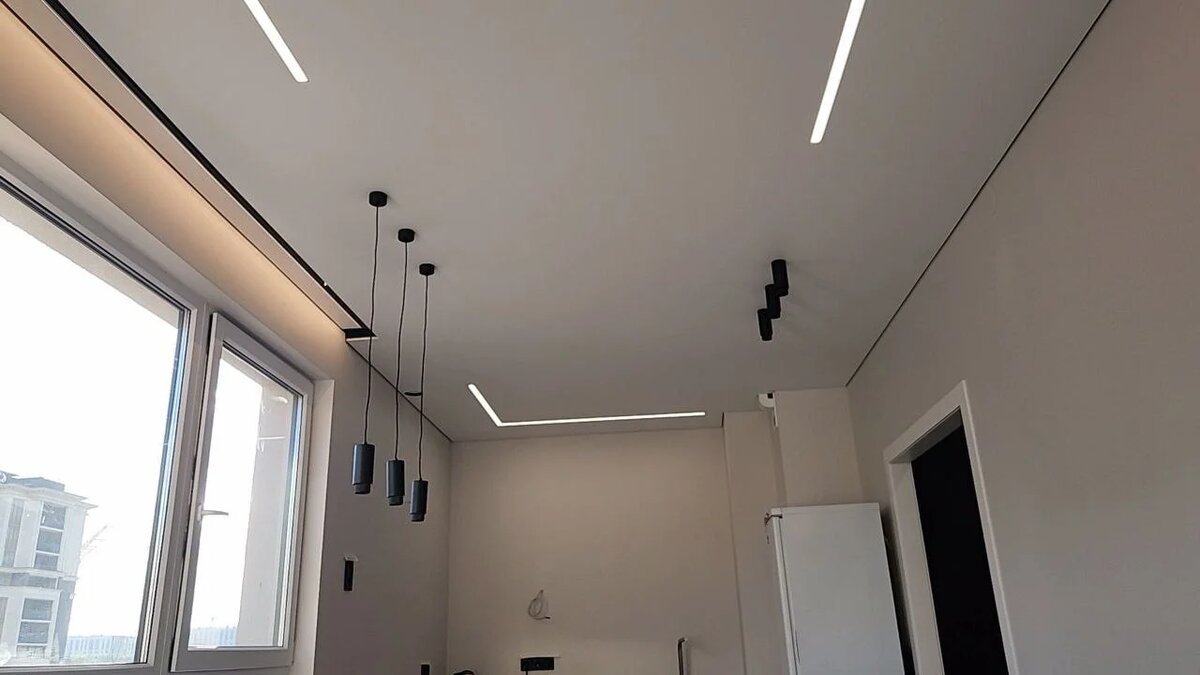 Матовый, сатиновый или глянцевый ПВХ — самый практичный вариант для кухни. Плюсы: Минусы: В большинстве случаев, когда спрашивают, какой потолок лучше для кухни, правильный ответ — ПВХ, подобранный под конкретный