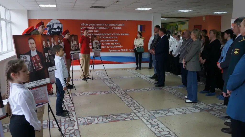 В преддверии Дня защитника Отечества в лицее №24 Волгодонска состоялось трогательное и глубоко значимое событие — торжественное открытие передвижной экспозиции «С памятью в сердце», посвящённой воинам, павшим при исполнении воинского долга в ходе специальной военной операции. Выставка стала живым напоминанием о тех, кто отдал жизнь за Родину. На фотографиях — живые семейные снимки: матери, жёны, отцы бережно держат в руках фото своих сыновей и мужей. Эти кадры — как мостик между «до» и «сейчас», между жизнью и вечностью. Рядом с каждым большим портретом — история подвига, рассказанная учениками лицея. Сильным моментом стало выступление одиннадцатиклассника, который сам представил своего отца — добровольца, ушедшего на СВО и не вернувшегося домой. Присутствие самых дорогих гостей — матерей, отцов, жён и детей погибших создало особую атмосферу. Многие из них потеряли своих близких всего год-полтора назад — в 2024–2025 годах. Для этих семей раны ещё свежи, но они нашли в себе силы прийти,