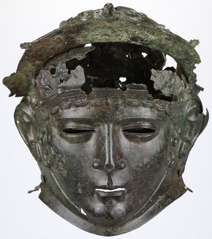Этот римский шлем кто-то хотел переплавить, но к счастью, не сделал этого