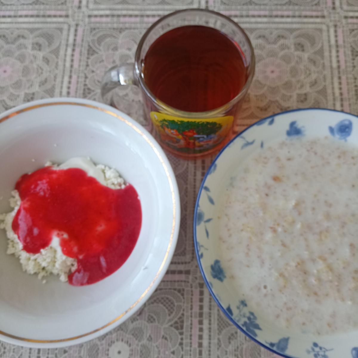 Приготовила нехитрый завтрак. Что-то я сегодня с кашей переборщила, не доела малость))..