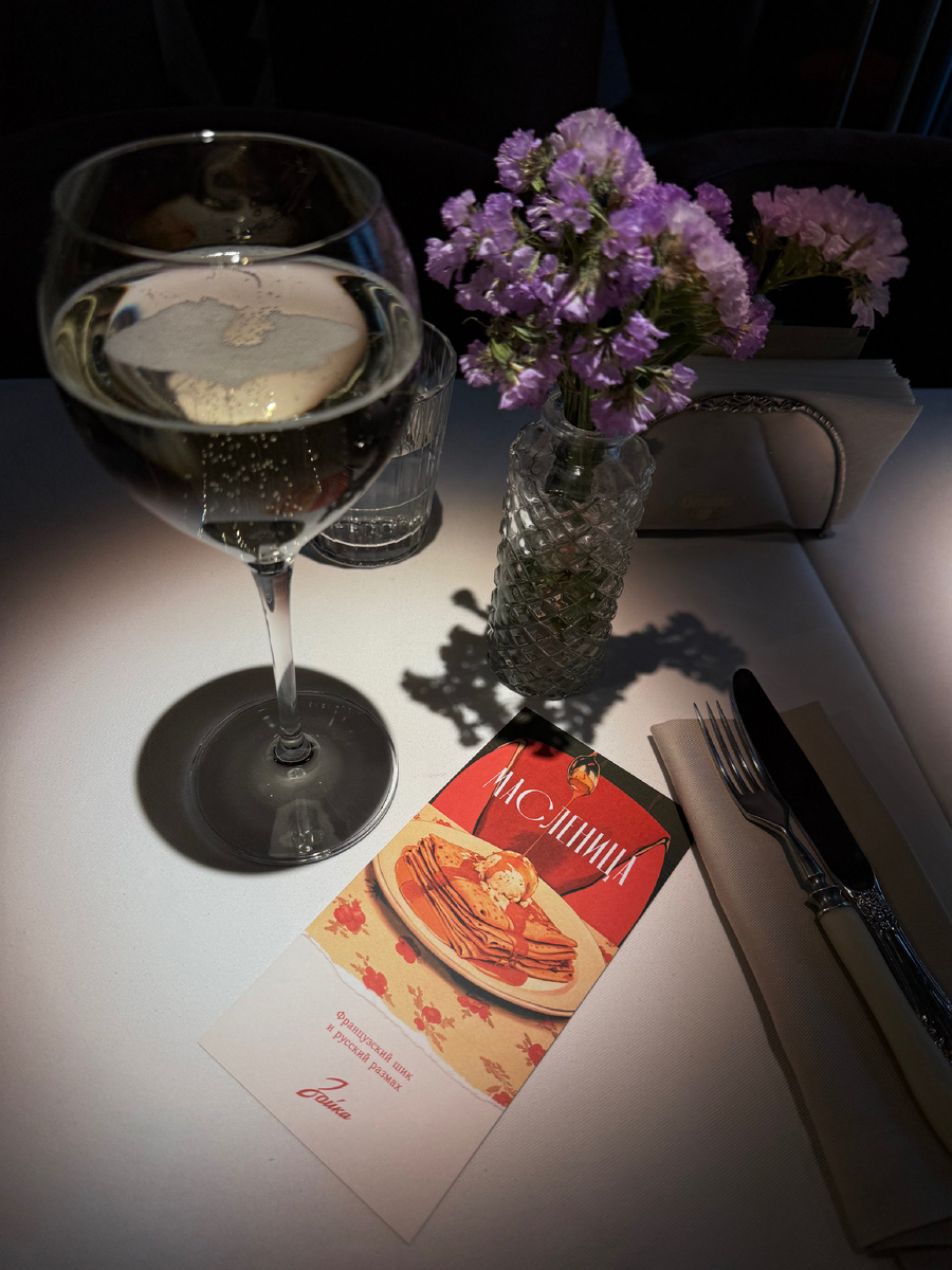 В этом году «Зойка» отказывается от скучных шаблонов. Вместо стандартного набора ресторан предлагает два формата празднования: авторское меню от шефа и блинный конструктор, где гость сам становится художником.