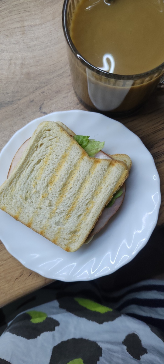 Я ощущаю насыщение только с белковыми продуктами. Поэтому на завтрак бутерброд с мясом, сыром и немного зелени
