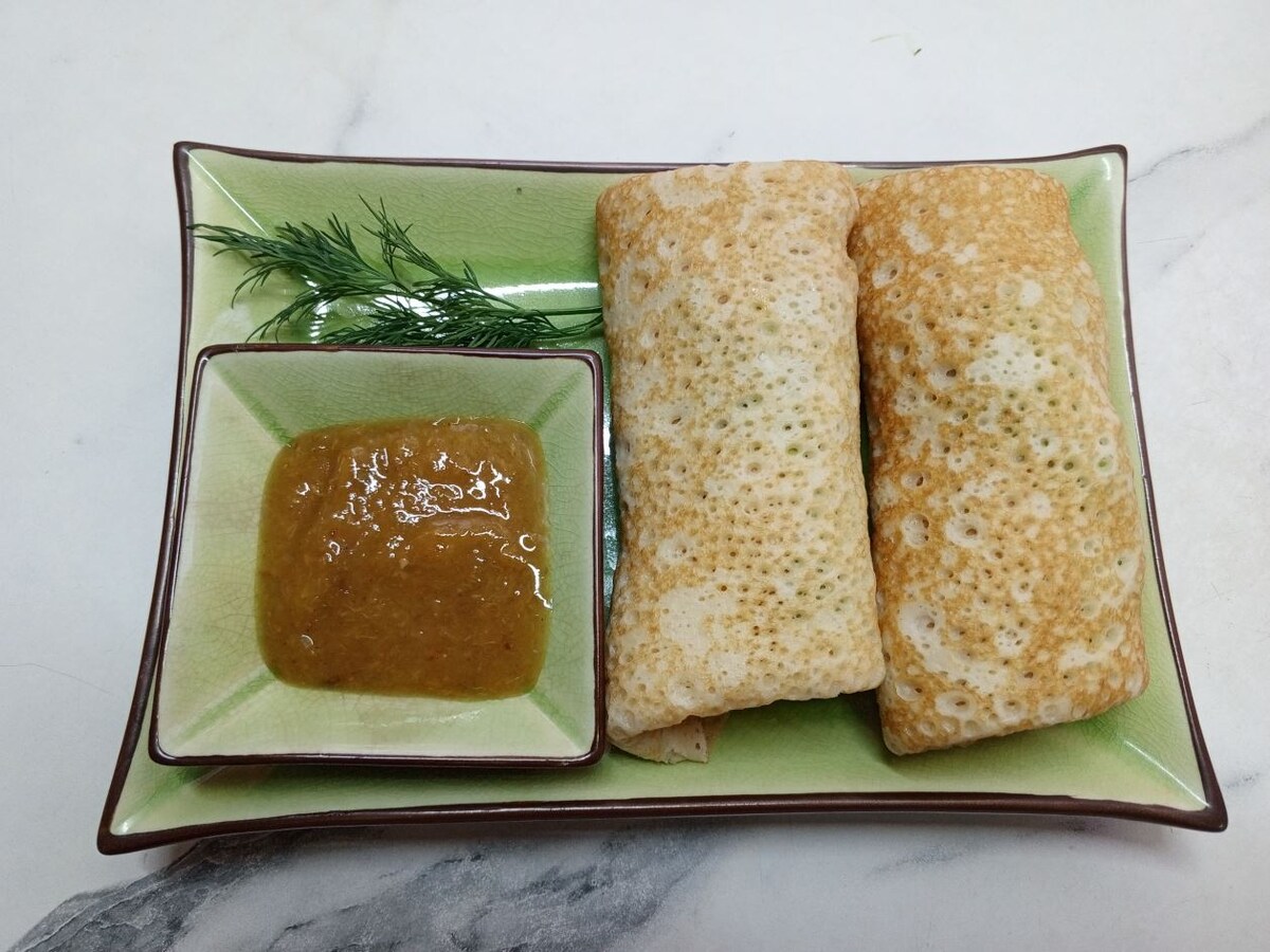 На канале много рецептов блинов и начинок, и я все равно продолжаю экспериментировать. Такого рецепта на канале нет: ни блинов, ни начинки. И я рада, что могу поделиться, потому что фаршированные блинчики получаются очень вкусными и сочными. Кружевные блинчики - это не значит, что рисунок у них как кружево, кружевные - это потому, что когда их берешь в руки, чувствуешь все дырочки. Который раз пеку блинчики по этому рецепту, и все по разному. В конце статьи напишу самую лучшую последовательность введения ингредиентов. Без чего эти блинчики не получатся? Без кефира или ряженки, листьев салата и куриной грудки. А все остальные ингредиенты обычно у всех бывают в холодильнике. Итак, блинчики. Особенностью этих блинчиков является их цвет, т.е. они получаются одного цвета с одной и другой стороны. Вкус у блинов мало, чем может отличаться. Если только сладостью. Но с учетом того, что начиняться они будут соленой начинкой, то сахар берется по минимуму. Хотя и со сгущенным молоком и вареньем