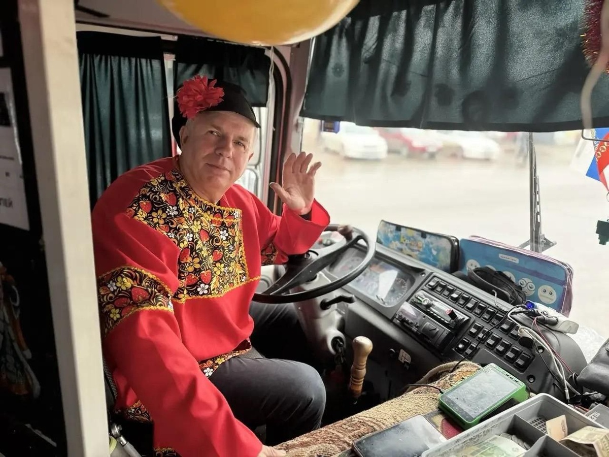 Водитель рейса, связывающего село Стефанидинодар с Азовом, нарядил автобус к Масленице, а сам вышел на линию в праздничном образе. Супруга водителя специально к его смене напекла свежих блинов. Во время поездки каждый желающий мог ими угоститься. ❤️ — ставь сердечко, если хочешь попасть в этот автобус! #Ростовская_область ✅ «В Стране» в MAX