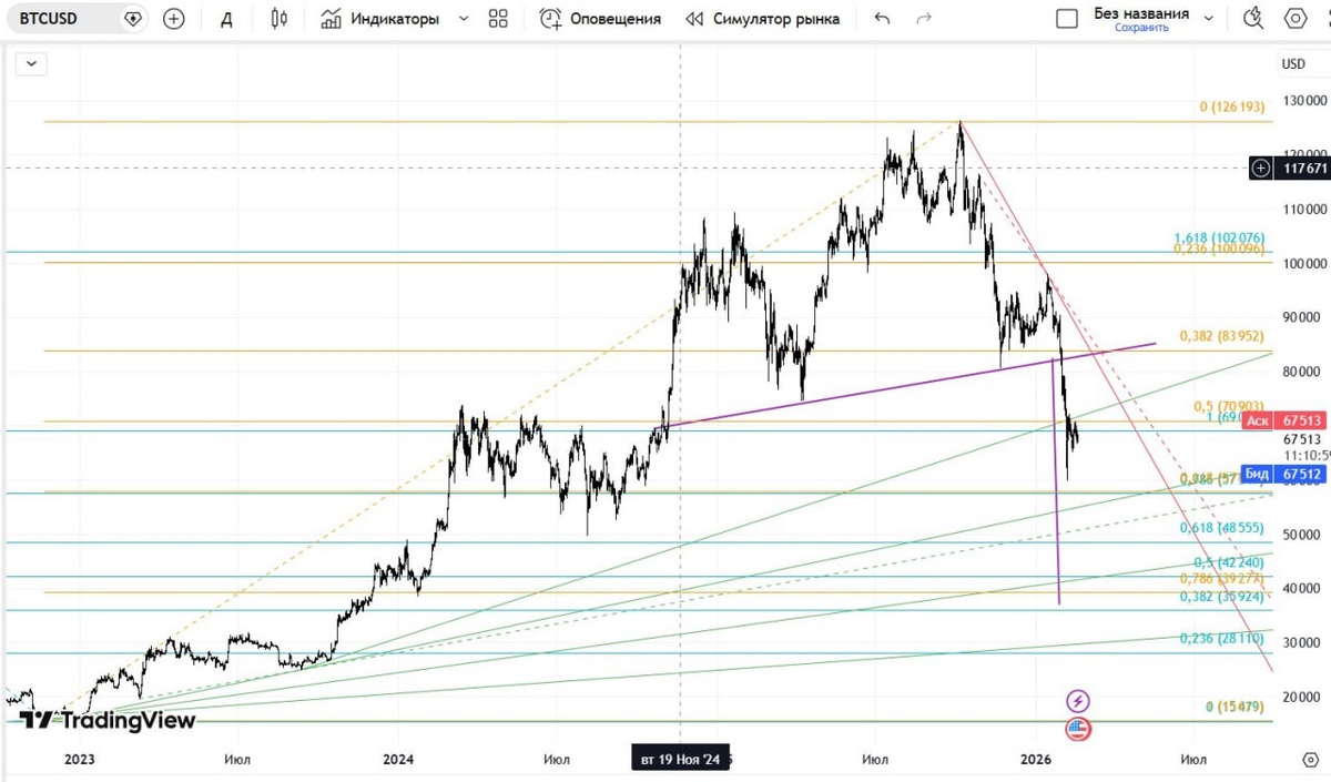 После бурных движений в конце прошлого года сектор вошёл в фазу ожидания. Волатильность снизилась, объёмы упали, крупные участники заняли выжидательную позицию. Сейчас ключевой вопрос — это пауза перед новым импульсом или начало более глубокой коррекции? 📊 Фундаментально С одной стороны, инфраструктура продолжает развиваться: — страны постепенно легализуют расчёты в цифровых активах и интегрируют их в экономику; — компании продолжают накапливать крупнейший актив сектора в резервах; — растёт интерес к токенизации реальных активов и цифровым аналогам золота. С другой стороны, давление создают макрофакторы: — ожидания по ставкам ФРС; — оттоки средств из биржевых фондов; — пересмотр прогнозов крупнейшими банками в сторону более умеренных. Именно поэтому сейчас нет сильного драйвера ни вверх, ни вниз — рынок балансирует между надеждами и рисками. 📊 Технически Флагман сектора (Биткоин) формирует фигуру разворота и уже протестировал важную зону коррекции. Цена движется к ключевым трендовым