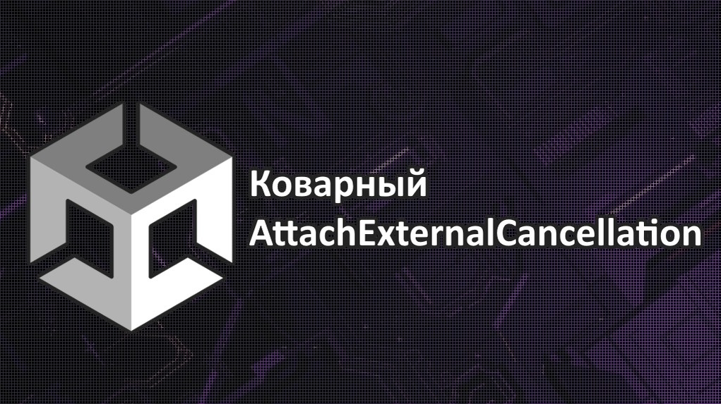 Если вы работаете с асинхронностью в Unity, то наверняка знакомы с UniTask. Это более эффективный и удобный для Unity инструмент, чем обычные шарповые Task. GitHub Его удобство часто достигается за счёт разнообразного "сахара", с которым важно не переборщить. Одна из таких "сладостей" — это метод AttachExternalCancellation, который очень часто используют не по назначению. —————————————— Обычно для прерывания асинхронной операции используют CancellationToken: его передают внутрь и отслеживают. Если во время исполнения был получен запрос на отмену, то нужно выбросить соответствующее исключение или прервать исполнение метода более мягко. 📎 Подробнее про это и полезные советы можно почитать здесь. Соответственно, если это какой-то метод UniTask, например Delay, то вся логика остановки внутри уже реализована — достаточно только передать токен. Почему-то принято считать, что AttachExternalCancellation работает таким же образом, хотя его можно приставить к любому асинхронному методу, который