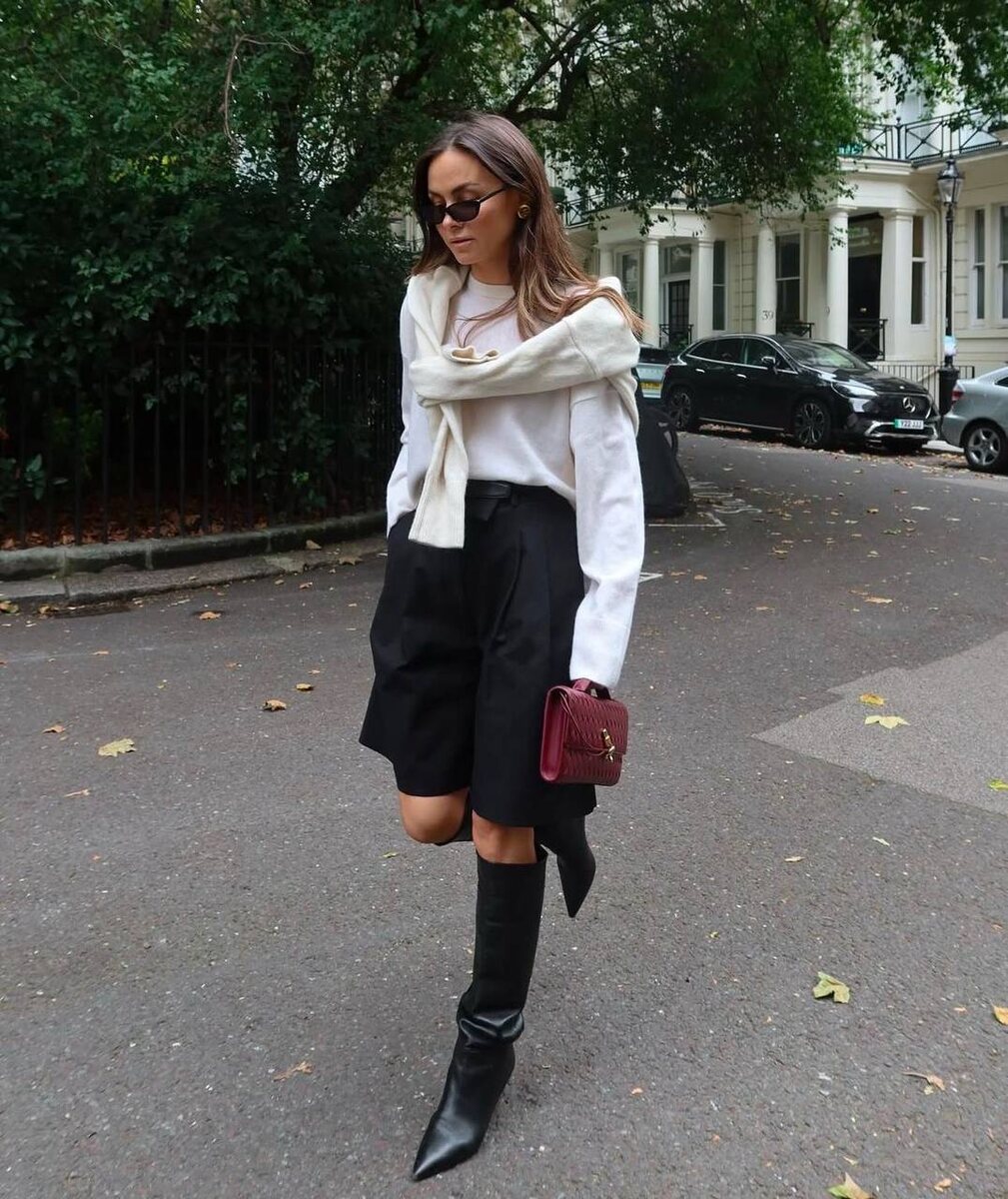 🙌🏼 👉🏼В качестве обуви в эту формулу отлично впишутся сапоги, высокие казаки, чопперы, ботфорты и даже ботильоны❤️🔥 👉🏼Шорты могут быть из костюмной ткани, замшевыми, кожаными или вельветовыми🫶🏼 👉🏼Каким будет плечевое изделие - зависит от вашего настроения 🥰 К шортам подойдет и пиджак, и вязаный трикотаж, и рубашки, и лонгсливы!) При этом слой может быть как один, так и два😇 👉🏼Завершающим слоем добавляйте пальто, можно как в длине миди или мидакси, так и пиджачного типа☺️ 👉🏼Последний штрих - аксессуары 🪄 Как вам формула? Носите шорты в холодное время года? Все формулы доступны по тегу: #MLформула