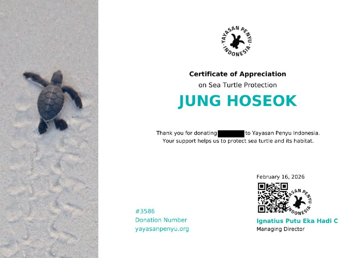 🍊 В честь дня рождения Хоби фанаты направили пожертвование в Фонд "Черепахи и Леса Индонезии" от его имени