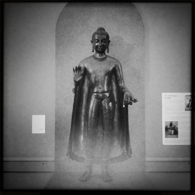 Султангандский Будда – крупнейшая древняя медная статуя Будды в мире. Её отлили в период Гупта-Пала, золотой век индийского искусства, вероятно, в 6–7 веках. Статуя высотой 2,3 метра, шириной метр, весом более полутонны изображает Будду в позе проповеди. Техника литья демонстрирует невероятное мастерство – создать цельнолитую медную скульптуру такого размера было технологическим прорывом. В 1861 году во время строительства железной дороги в Бихаре рабочие нашли статую, закопанную в земле. Вероятно, её спрятали между 8 и 12 веками, когда буддизм в регионе приходил в упадок, чтобы защитить от разрушения. Британский инженер Э. Б. Харрис забрал статую, отправил в Калькутту, откуда её погрузили на корабль в Англию. По пути корабль затонул, но статую подняли со дна, и она в итоге оказалась в Бирмингемском музее, где стала главным сокровищем коллекции. Терра инкогнита | Неизвестная земля