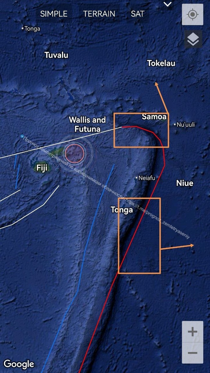 В Океании (Тонга-Самоа) возможно землетрясение М6.5+ в течение 9 дней