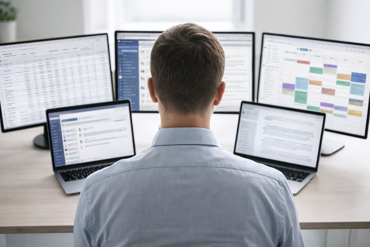 Снаружи такой сотрудник выглядит занятым. Он постоянно в процессе. Отвечает, открывает файлы, что-то начинает. Внешне продуктивность. По факту движение без результата. Это классическая иллюзия многозадачности.